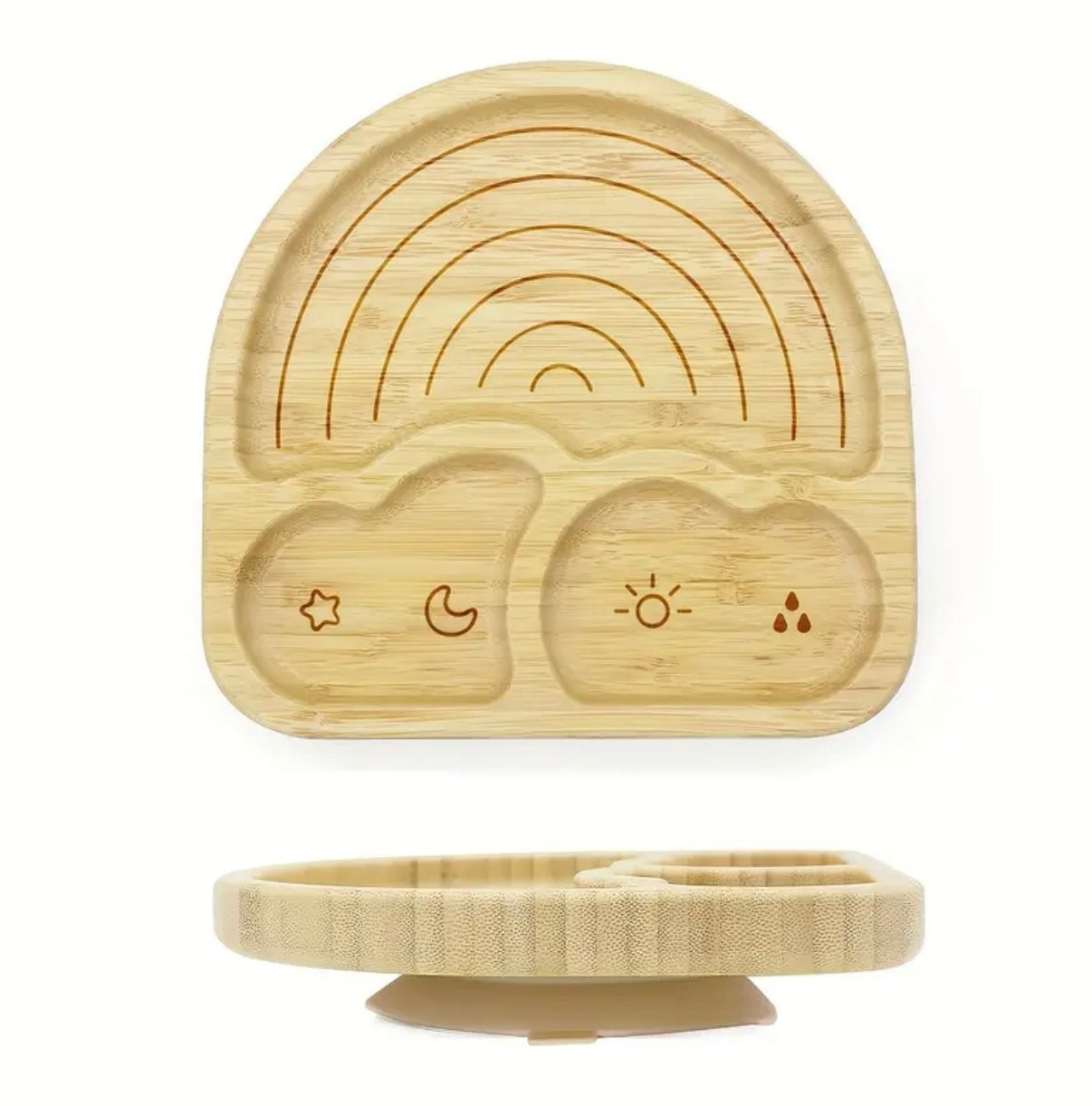Platito de bambú antideslizante con tres (3) divisiones en forma de arcoíris