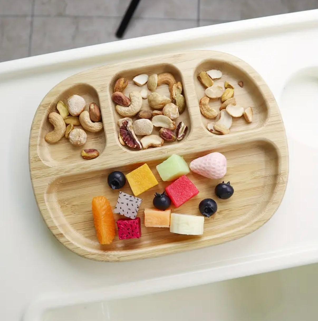 Platito de bambú antideslizante con tres (3) divisiones